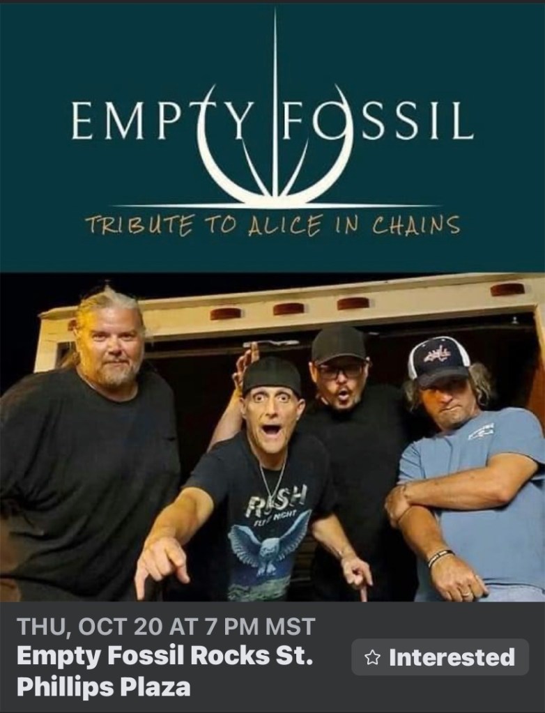 Empty Fossil is a band focuced on what’s important, THE MUSIC! They bring true craftmanship to the art of the tribute. Based in Arizona, Empty Fossil‘s dedication to authenticity is second to none. Echoing the bone chilling vocal harmonies of co-pilots Staley/DuVall and Cantrell, Gabe Sevy (Staley/DuVall’s vocals) and Storey Kilgore (Cantrell’s guitar/vocal) will leave you willfully haunted. Storey’s petralal of Cantrell’s melodic guitar riffs and larger than life tone hits you right in the sweet spot. Architechs of rhythm, Bassist Dave Badinger (Starr/Inez’s Bass/vocals) and Drummer Andy Miller (Kenny’s Drums/vocals) lay down a mesmerizing foundation of rhymic mastery.